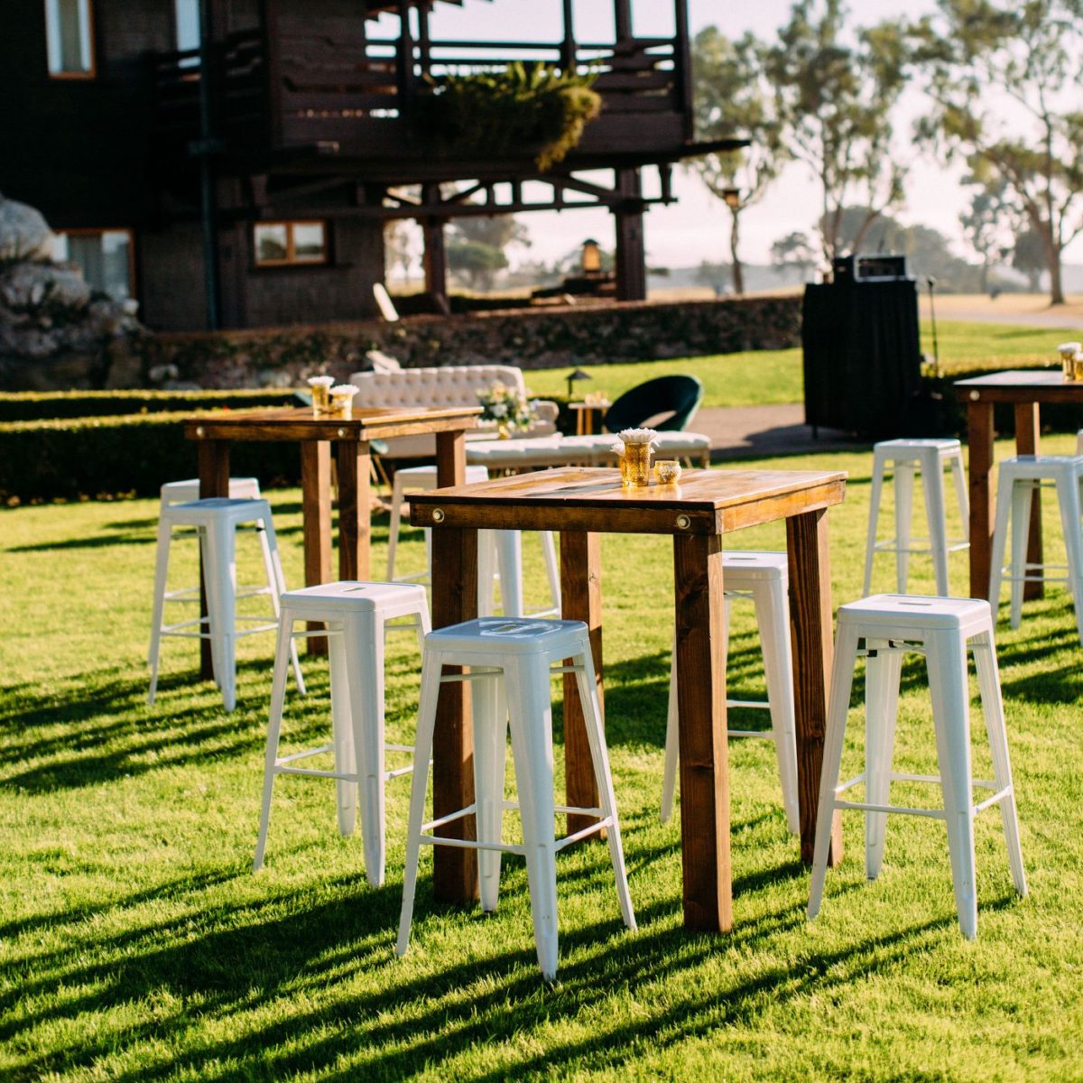 Our 3′ hickory cocktail tables are perfect for intimate gatherings, corporate events, and cocktail hours. Also known as belly tables, pub tables, bistro tables, or highboys. They pair effortlessly with our bar stools to create a stylish and dynamic event space.