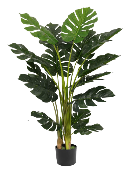 This lush 4ft artificial monstera features broad, split leaves and a natural canopy shape, adding a bold tropical vibe to any space with zero maintenance required.