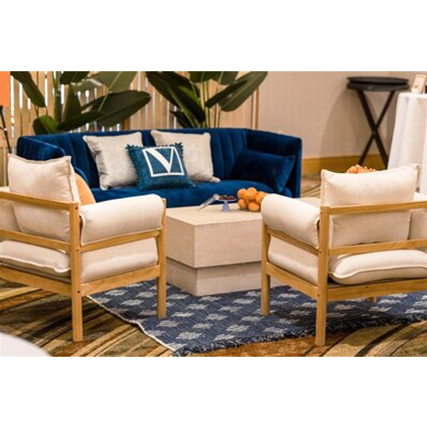 Upholstered in vibrant fabric and supported by a sleek, rounded form, this piece blends modern design with relaxed luxe.