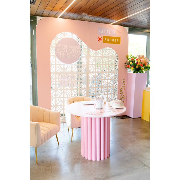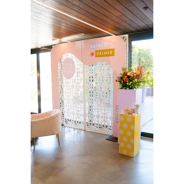 With its fluid, sculptural design and sleek silhouette, this backdrop creates a visually striking focal point—perfect for photo ops, stage styling, or immersive brand moments. It’s a versatile piece that brings contemporary energy and high-design vibes to any space.