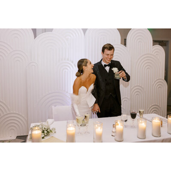 4ft wide pannels with 8ft height at tallest arch * Walls are best when tucked into one another
