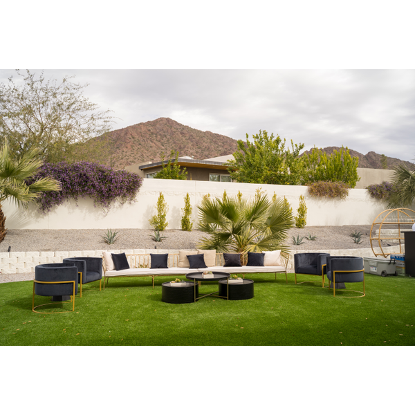 Upholstered in deep ebony fabric and defined by its clean-lined silhouette with subtle angular curves, this chair offers both polished visual appeal and generous comfort.
