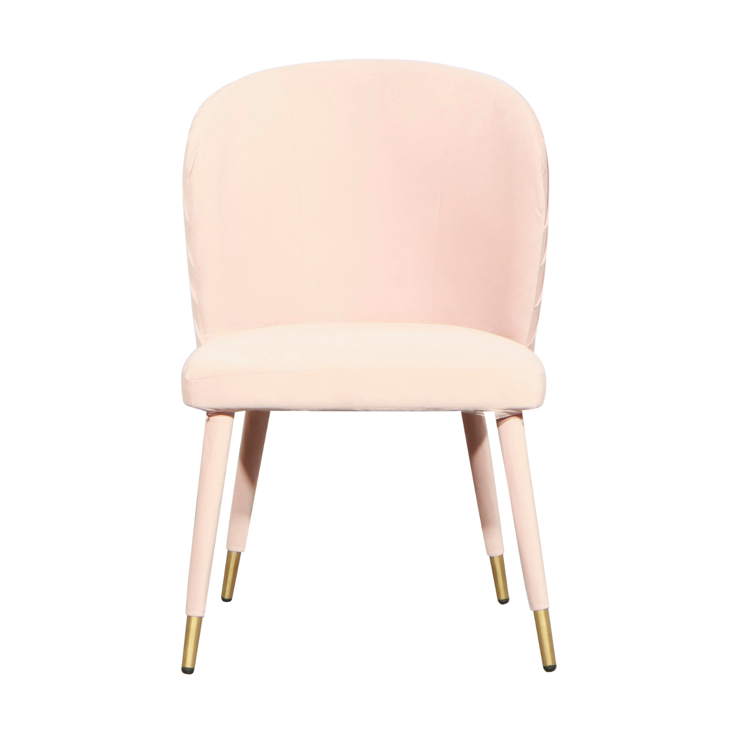 Elevate your dining experience with the Belgium Chair, where opulent blush velvet and masterful artistry meet. Its exquisite texture invites the touch while its elegant sculptural form and soft curves create a harmonious silhouette. Every detail, from its perfectly contoured seat to its carefully balanced support, transforms any dining space into an atmosphere of effortless sophistication.
