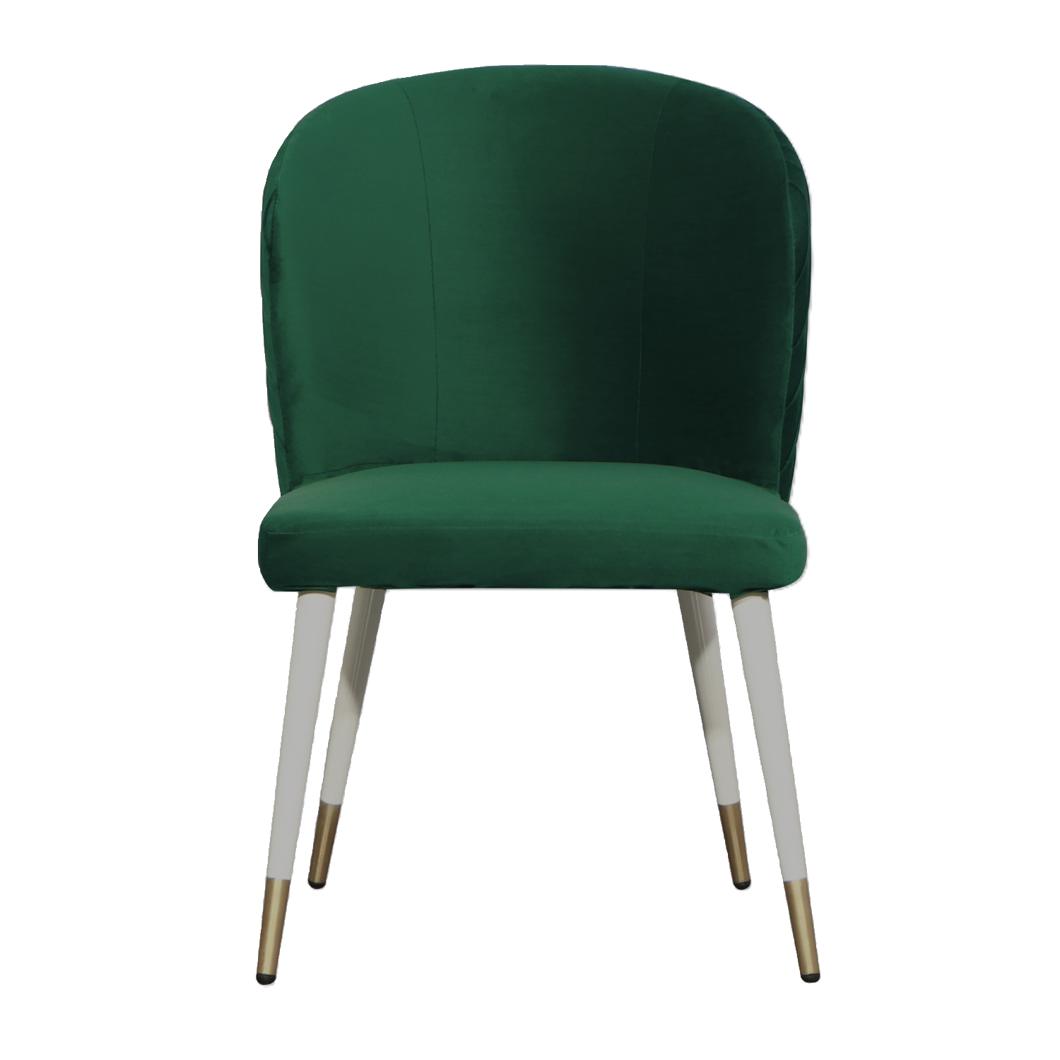 Elevate your dining experience with the Belgium Chair, where opulent emerald green velvet and masterful artistry meet. Its exquisite texture invites the touch while its elegant sculptural form and soft curves create a harmonious silhouette. Every detail, from its perfectly contoured seat to its carefully balanced support, transforms any dining space into an atmosphere of effortless sophistication.