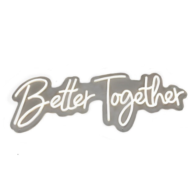 Our "Better Together" LED Neon Sign is a radiant and heartwarming addition to your decor that celebrates the beauty of togetherness. The neon lettering emits a warm and inviting glow, creating a visual focal point that symbolizes the strength of your connection.