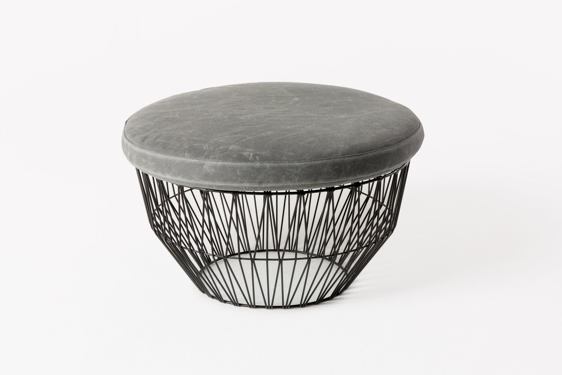 Black Bend Wire Ottoman (with Gray cushion)