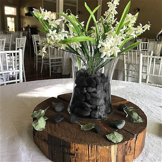 Our Black River Pebbles adds an elegant touch to weddings and special events. The uses for these black river pebbles are limited only by your imagination. They can be used to fill vases and containers as table centerpieces or as accents in floral arrangements and decorative displays.
