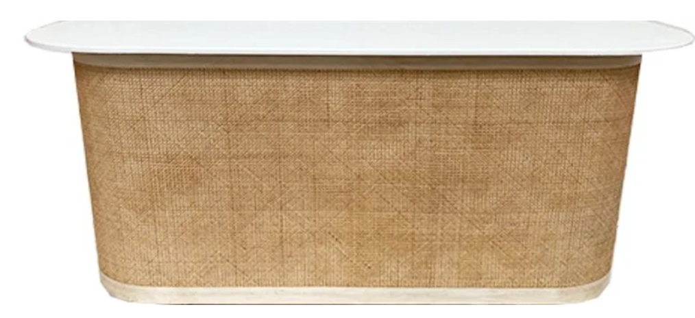 The Cane Bar from Dang! Fine Rentals brings breezy, tropical elegance to your event with its natural woven cane panels and warm wood frame.