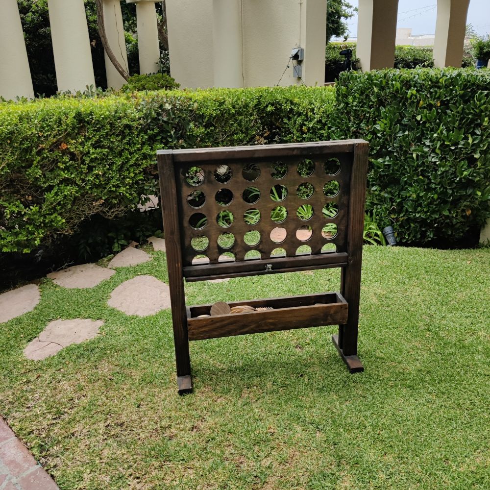 Treat your guests to tons of fun with this giant wood Connect Four rental at your garden party, wedding, BBQ, or picnic.