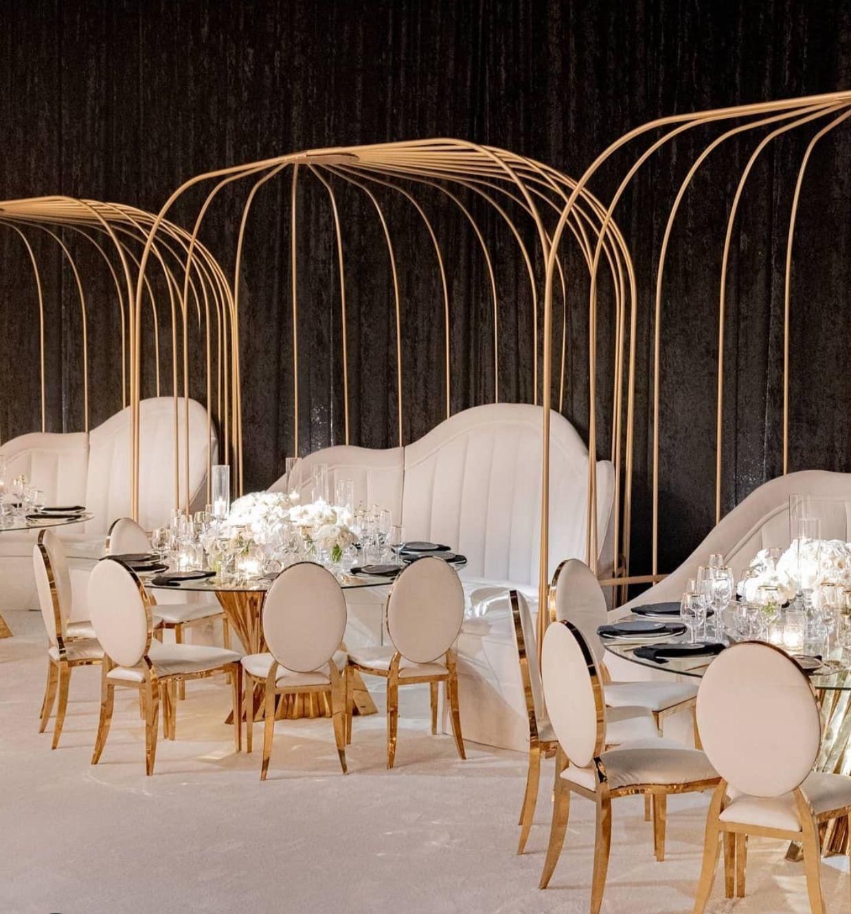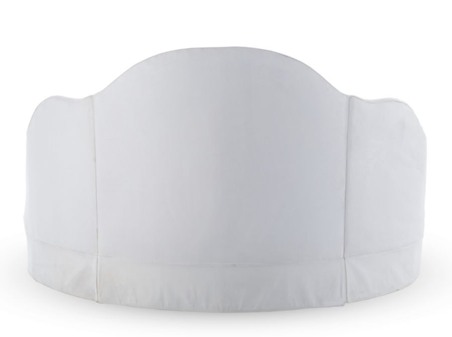 Curved three piece armless booth, velvet fabric with a pleated back.