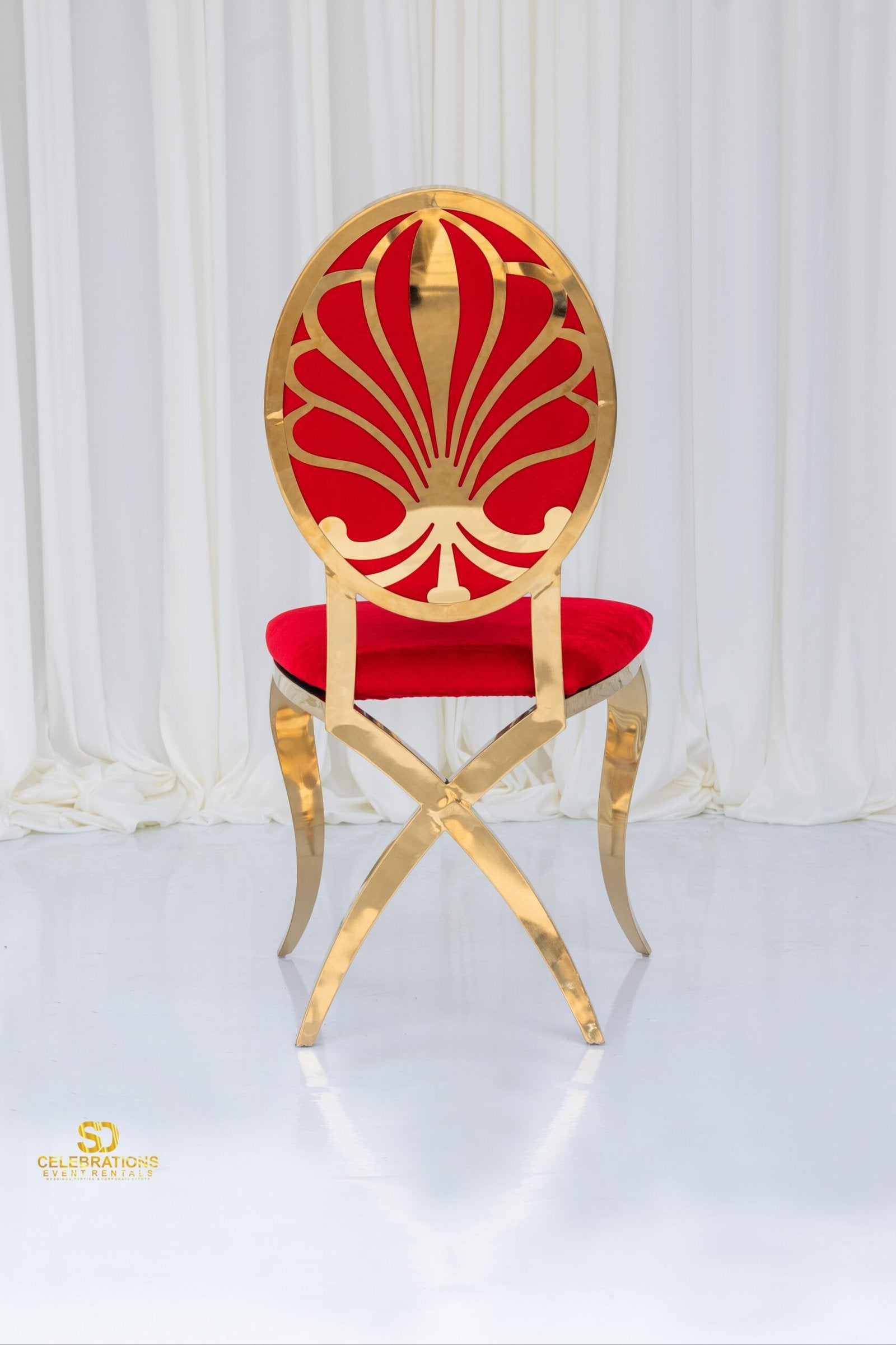 The Crown X-Leg in Red. This stunning piece of furniture is perfect for adding a touch of elegance and style to any event. The Crown X-Leg features a sleek design with a bold red finish that is sure to make a statement.