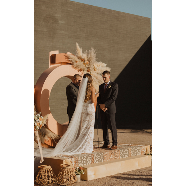 Featuring a soft blend of muted greys and warm rust tones in an understated pattern, this rug adds just the right amount of visual interest without overwhelming your setup. It’s perfect for modern, rustic, or industrial-inspired lounges and ceremony spaces that call for a neutral base with a touch of warmth and texture.