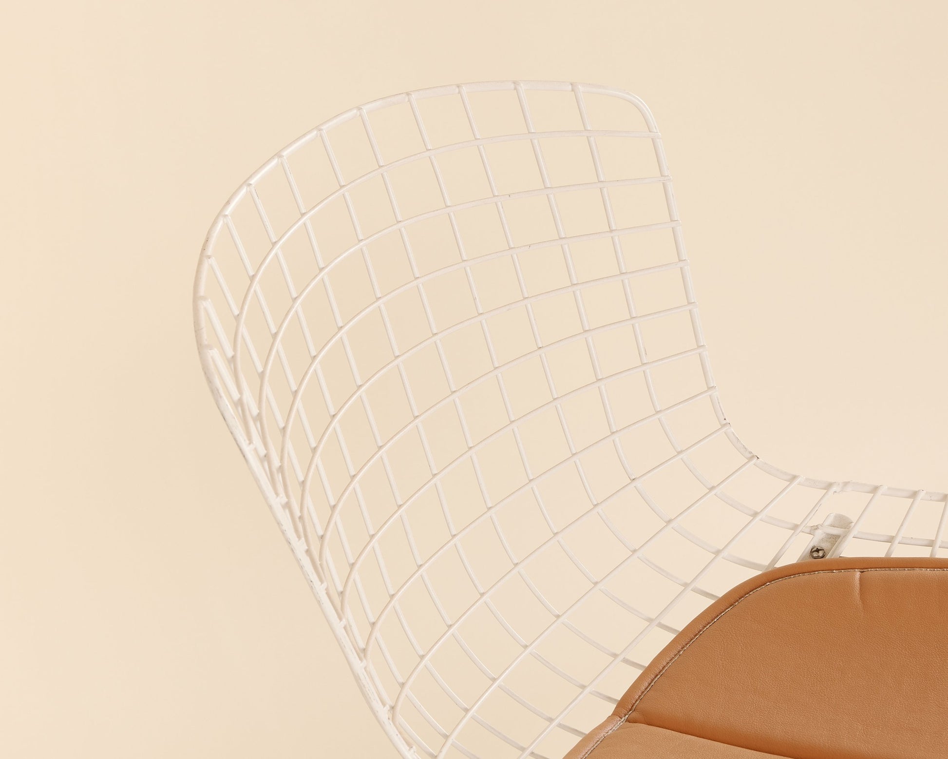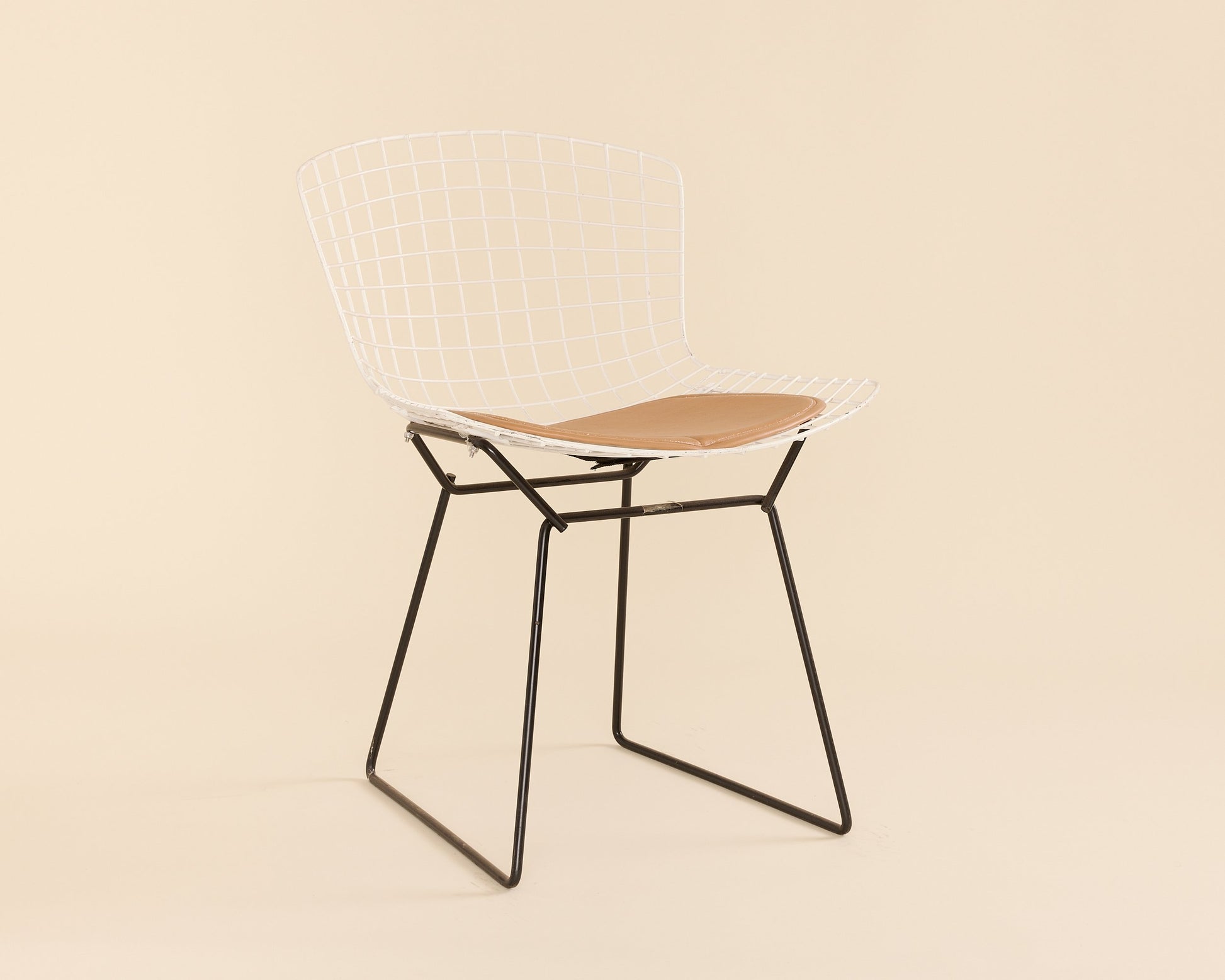 Knoll Bertoia White Chair w/ Tan Cushion