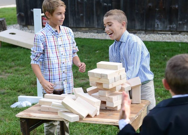 Package of three games- cornhole, ladderball, + giant Jenga