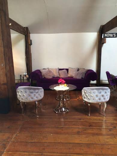 Grey velvet fabric with diamond tufted crystal buttons on back