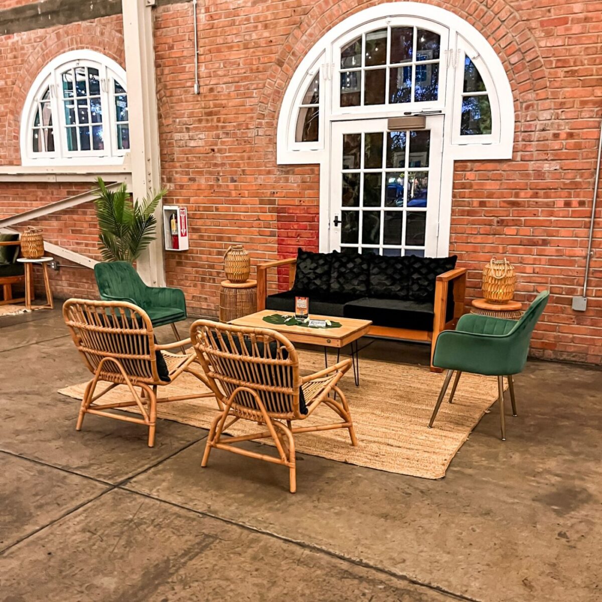Our woven rattan wood lantern works well for tabletop décor and pairs beautifully with our lounges. It is made of thin strips of natural-colored bamboo wood. This lantern works well with a flameless candle, faux flowers, and more!