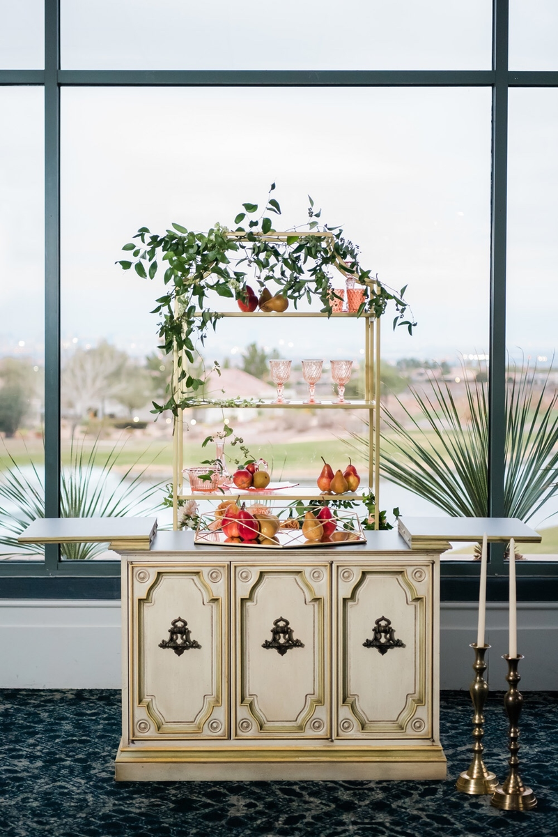 She also makes a great Champagne bar or dessert station since her table top can be expanded for more surface space.