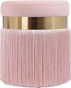 Light Pink ottoman with tassel fringe and gold metal band.