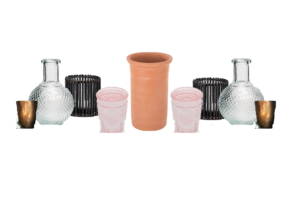 A collection of rustic boho vases, in a varitey of textures and sizes perfect for flowers and candles. Each collection has up to 9 pieces and makes for a great centerpiece display or as scattered decor throughout an event.