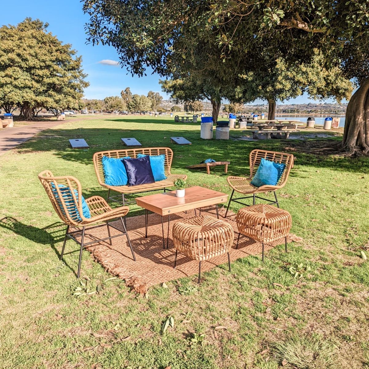 Spice up your lounge with an assortment of our pillows, poufs, sheepskin throws, and rugs. We style it for you!