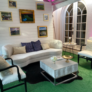 Perched upon brushed gold legs with cream chenille upholstery, this sofa feels like lounging on a cloud.