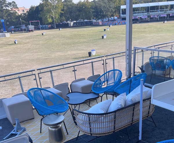 Kick back and dream of the islands in these fun blue all-weather lounge chairs.