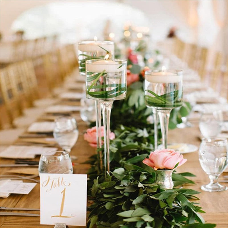 Our Pedestal Candle Holders are an elegant decor piece that elevates the beauty of candles to new heights. They provide a stunning pedestal for your candles, casting a soft and inviting glow that enhances any space. Candles under 2.3" in diameter will fit - choose from tea lights, votives, 2"x2" pillars or 2" floating candles!