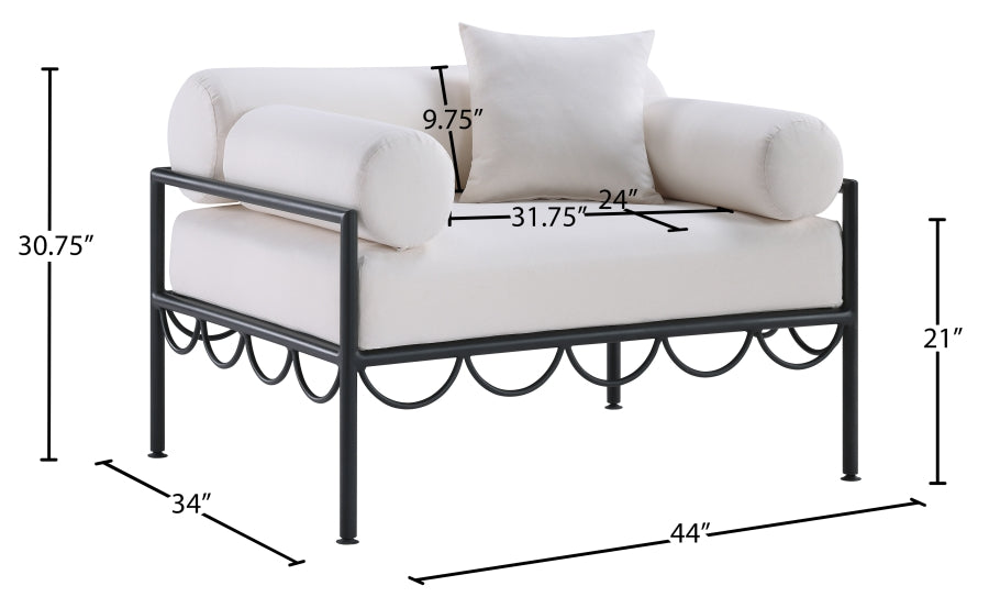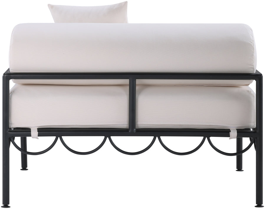 Bold art deco lines and plush cream water-repellent fabric define the Portofino patio armchair. Wrapped in a matte black aluminum frame, it balances striking design with outdoor durability. Perfect for lounging under the sun or stargazing in style, this chair turns any outdoor space into a chic retreat.