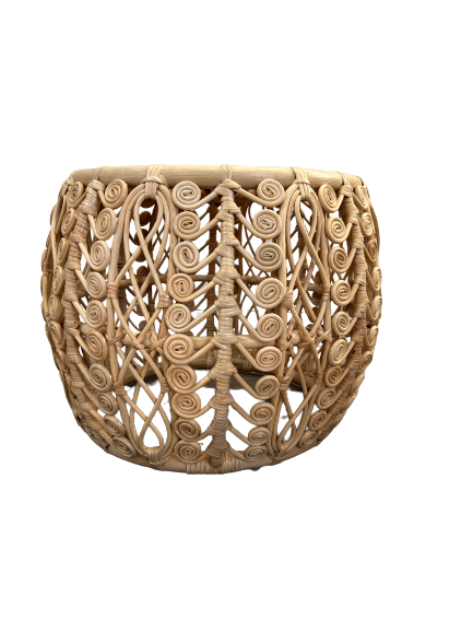 Crafted from handwoven rattan over a slim base, the piece strikes a strikingly light yet curated presence while staying grounded in boho‑inspired design.