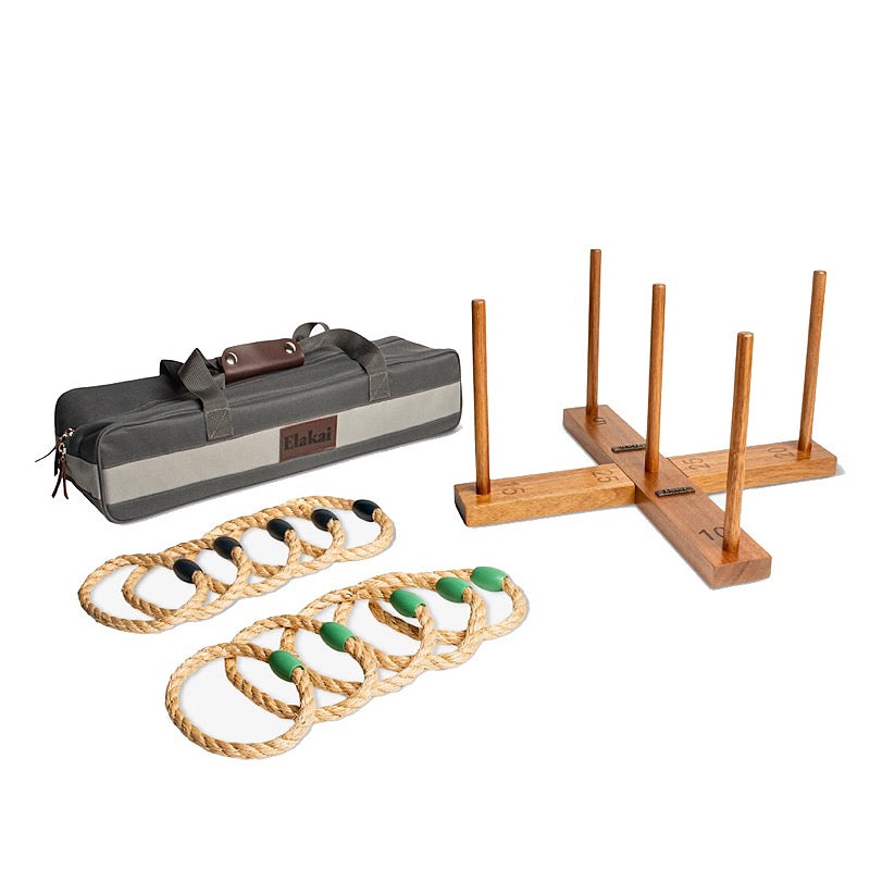 Our beautifully crafted Ring Toss game comes with 10 sisal rope rings, an Acacia wood target and a carrying bag. Enjoy many types of games with this ring toss set.
