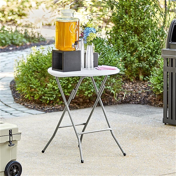 The 24" Round Table is constructed from high-quality plastic and is designed to provide a sturdy and reliable surface for various purposes, making it perfect for both indoor and outdoor use.