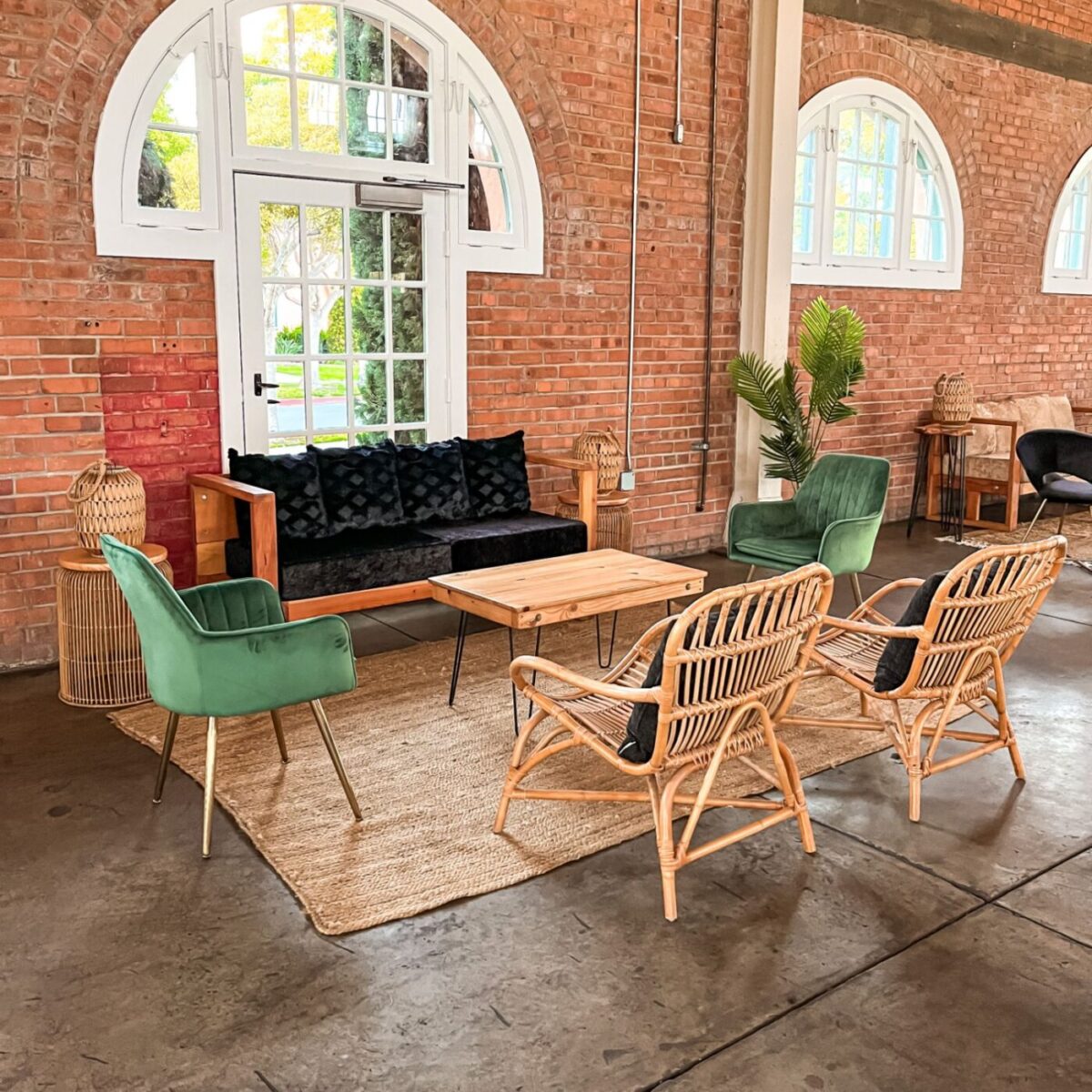 Our woven rattan wood lantern works well for tabletop décor and with our lounges. It comes with an LED candle.