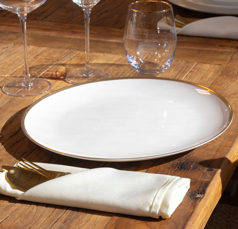 Our Signature Gold Rim Charger Plate, measuring 12 inches, is the perfect statement piece for any elegant table setting. With its luxurious gold rim and classic design, it enhances the presentation of your dinnerware while adding a touch of sophistication. Ideal for weddings, galas, and upscale events, it’s the ultimate finishing touch for a memorable dining experience.