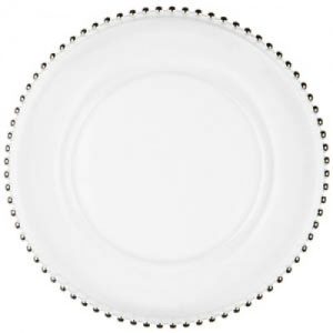 Our glass silver beaded charger plates are a beautiful embellishment for your table setting.
