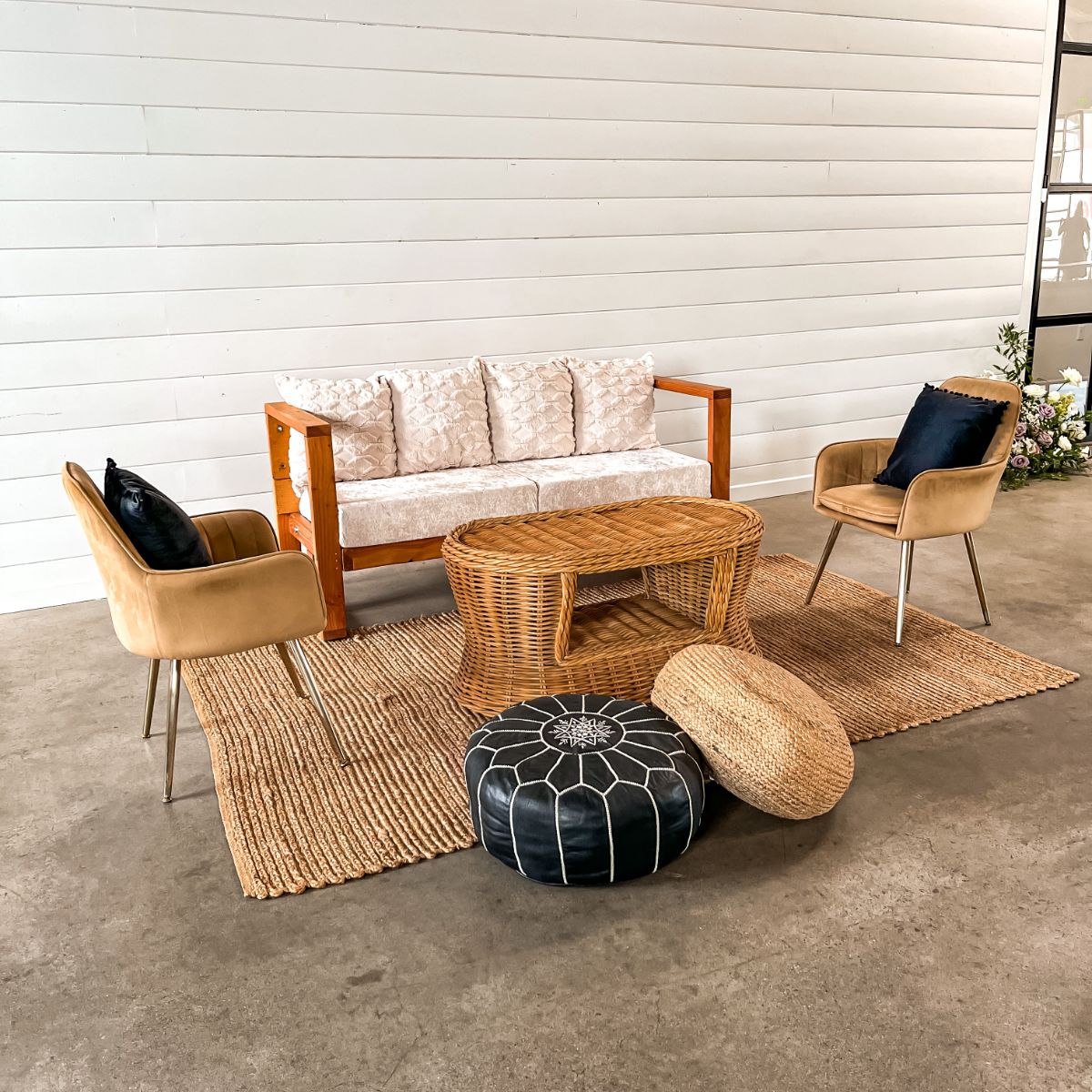 This modern honey wood sofa is perfect for use with any of our lounge sets and pairs especially well with our rattan furniture.