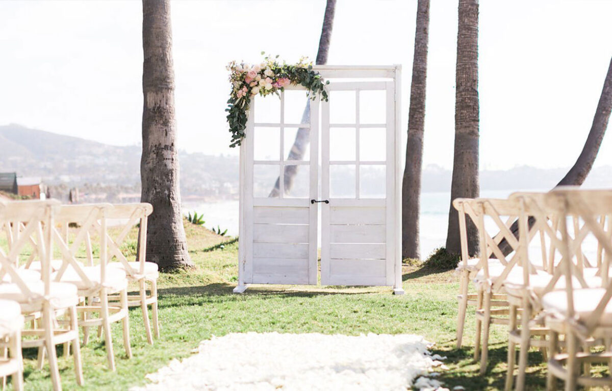 Our beautiful handmade wedding doors look great at the beginning of the aisle or as a backdrop to your ceremony.