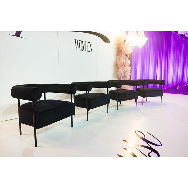 Upholstered in a refined neutral fabric, this chair features sleek, angular lines softened by generously padded cushions and subtly flared arms. With its balanced silhouette and comfortable form, the Wolfe Chair becomes a sophisticated focal point in any lounge or event space.