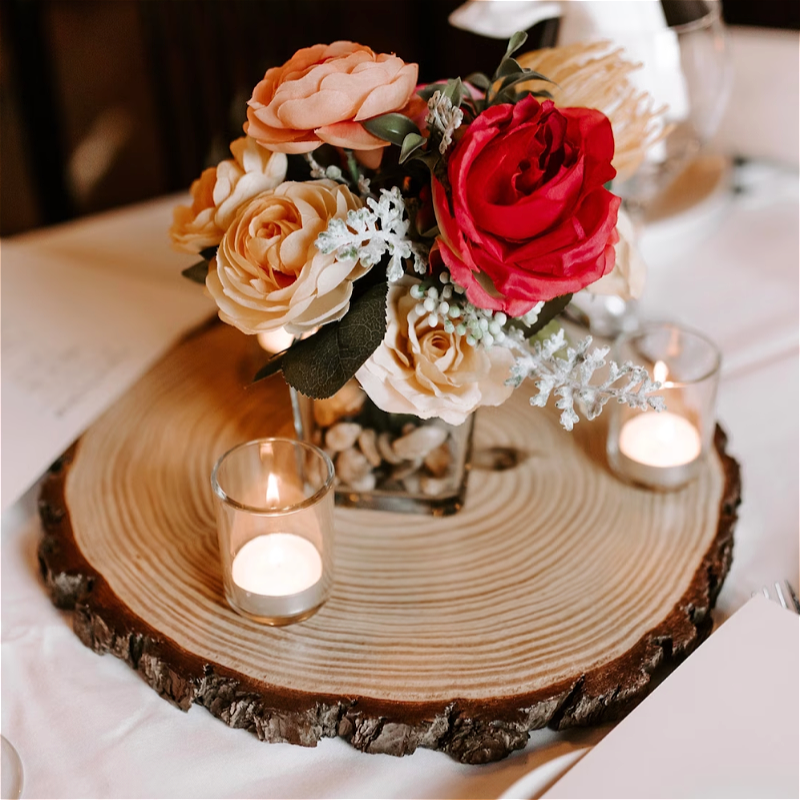 These quality wood rounds are professionally cut and dried. They are approximately 11" in diameter and can be used to make beautiful rustic centerpieces!